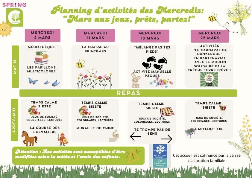 Nous avons hâte d’accueillir vos enfants et de passer ensemble de super mercredis printaniers ! 🎉