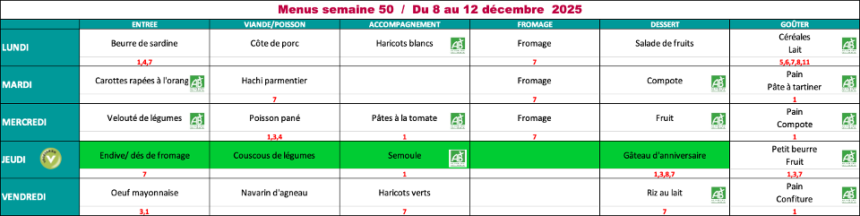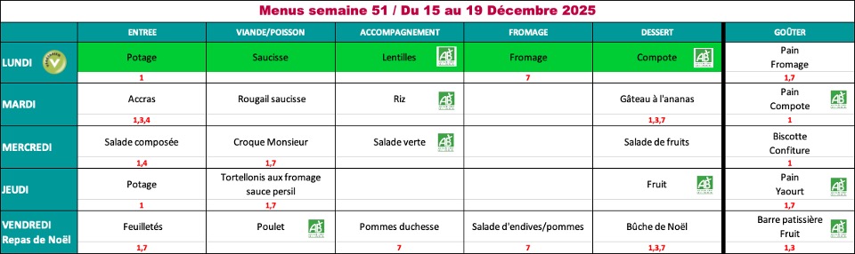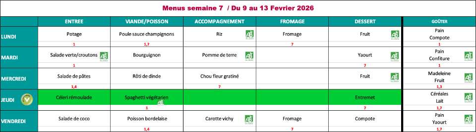 - Les menus sont validés par la diététicienne de la CDCHS Il sont susceptibles de changer suivant les approvisionnements