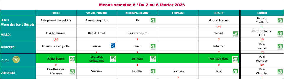 Tous nos plats sont faits maison. Les produits en approvisionnement bio sont indiqués par le logo AB. Les approvisionnements en poisson sont tous fait suivant la charte de la pêche durable