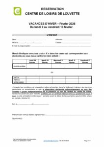 Contrat de réservation pour les vacances de Février 2026
